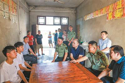 7月21日,安徽省來安縣施官鎮大塘村的董家來了一群“兵親戚”——縣人武部領導上門慰問了解準新兵的家庭情況。原來,董家的雙胞胎兒子董德浪、董德濤剛剛以優異成績被陸軍步兵學院裝甲車輛工程專業錄取,人武部領導到準軍屬家認門來了。