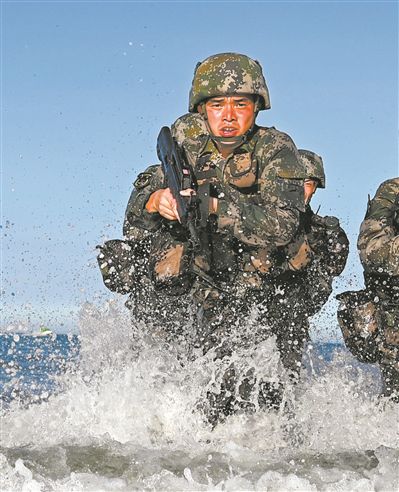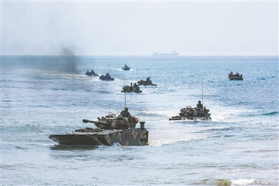 炎炎夏日,某海域風高浪急。東部戰區陸軍某兩棲合成旅在惡劣海況下對泛水編波、上下登陸艦、海上戰斗射擊、搶灘登陸等重難點課目進行訓練,錘煉官兵海上作戰技能。