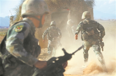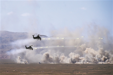 鐵流滾滾展雄風,陸空協同戰猶酣。聯合任務部隊采取陸航沖擊、裝甲突擊、機降破襲、空中突擊等行動,對“敵”實施立體多路攻擊,徹底消滅殘存的“恐怖分子”。
