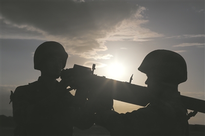 參訓官兵快速奔向戰位。