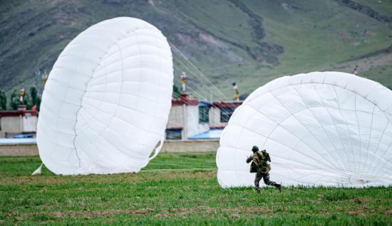 據介紹,此次訓練使用的高原型降落傘相比平原型降落傘傘翼更大,在高原稀薄的空氣里,下降得更穩。該型降落傘曾在海拔2000多米的高原做過試驗,不過在海拔3800米以上的高原使用該傘進行整建制傘降訓練,還是第一次。(盧東方、王述東)