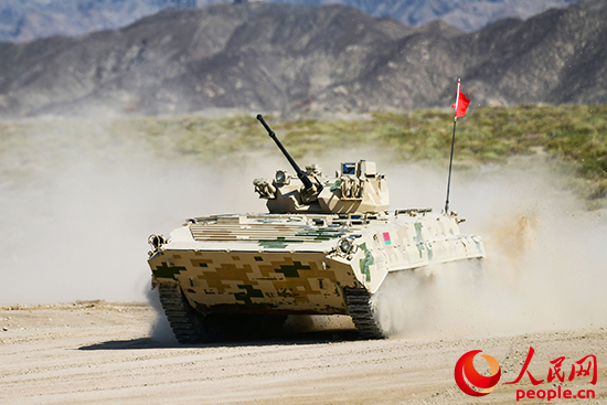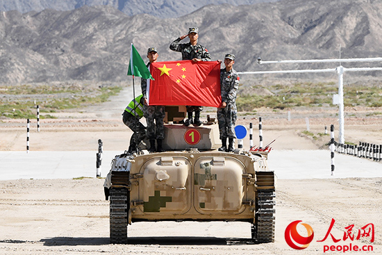 人民網庫爾勒8月24日電 戈壁烽煙起,戰車往來疾。8月23日,“國際軍事比賽-2021”中國庫爾勒賽區進入首個比賽日,以賽道難度大和射擊要求高而聞名的“蘇沃洛夫突擊”項目率先展開競逐。