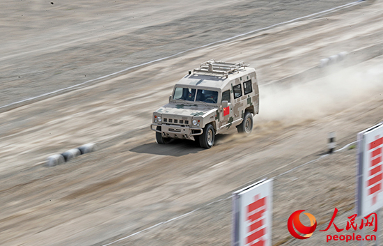 中國參賽隊員駕駛車輛疾馳在賽道上。羅興倉攝