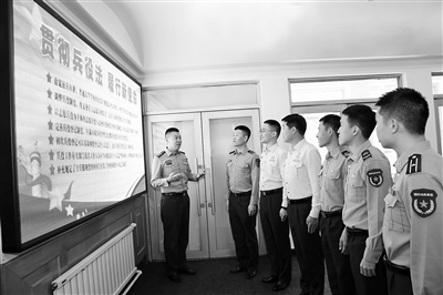 8月23日,黑龍江省大興安嶺軍分區組織所屬官兵、文職人員學習新修訂的兵役法,以實際行動貫徹履行兵役法的新規定。圖為該軍分區部分官兵和文職人員學習兵役法。曹修武攝