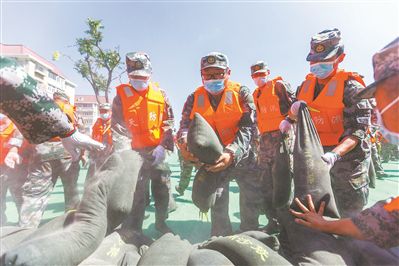 “報告!由于連續強降雨,南運河多處地段發生險情,急需加固河堤!”“報告!離險情地域最近的南開區民兵分隊已按預案奔赴險情點位,我區民兵分隊也已集結完畢!”8月20日,在天津市紅橋區人武部,軍事科長趙躍強向指揮員報告,各區民兵分隊正按照應急協作預案展開搶險救災演練。
