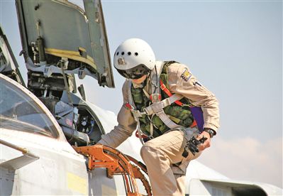 敘利亞赫梅米姆空軍基地,俄軍飛行員即將駕駛蘇-24戰機執行任務