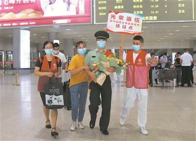 筆者看到,各縣(市、區)火車站、汽車站等出口處懸掛著歡迎退役軍人返鄉橫幅,身著紅馬甲的退役軍人事務局工作人員、“新長征”退役軍人志愿者、擁軍義工,走進車站做好迎接退伍返鄉老兵的相關工作。據了解,他們聯合開展“發一份疫情防控須知、遞一份老兵返鄉報到指南、披一次歡迎返鄉綬帶、戴一朵大紅花、說一句暖心的話、送一杯熱茶、拍一張返鄉照片、專車接送一次回家、一站式服務、第一時間告知‘優軍碼’使用方法”為主要內容的“十個一”活動。此外,還充分利用當地電視臺、“兩微一抖”、車站和市政廣場大屏等媒介,滾動播出迎接退役軍人返鄉活動的喜慶場面,在全社會營造“當兵光榮”的濃厚氛圍,激發老兵退伍不褪色、返鄉建新功的壯志豪情。