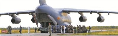 上圖:9月10日,最后一批中方參演部隊官兵,乘坐運-20運輸機抵達俄羅斯奧倫堡軍用機場。劉 丹攝