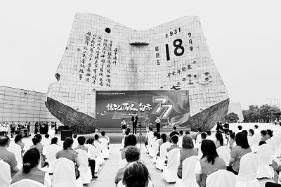 2021年7月7日,由沈陽市委宣傳部、沈陽市教育局等單位舉辦的《銘記歷史 勿忘七七》國防教育主題活動在沈陽“九一八”歷史博物館舉行。張維平攝/光明圖片