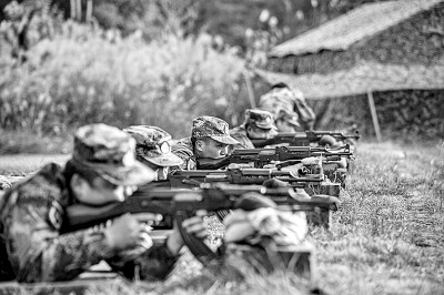 湖南省懷化市靖州縣人武部組織民兵實彈射擊演練。胡斐攝/光明圖片