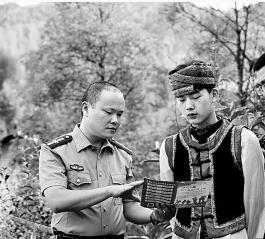 在廣西柳州市融安縣板欖鎮東嶺村,征兵工作人員給瑤族群眾講解征兵政策。覃慶和攝/光明圖片