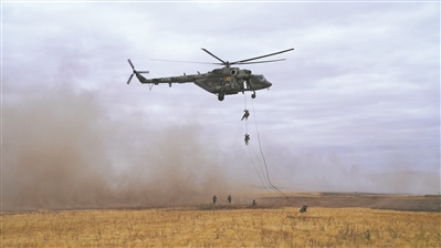 9月17日,參演部隊特戰分隊實施索降滲透至“敵”后。新華社記者 梅世雄 攝