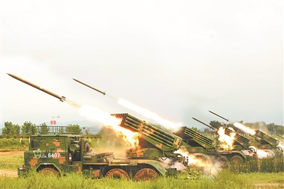 各火力單元抵達指定地域后,快速構筑陣地。不久,“敵”目標位置確定,戰斗打響。指揮方艙內,一道道指令傳向各點位;陣地上空,一枚枚炮彈呼嘯著劃破蒼穹。經過炮兵群數輪打擊,目標區域變成一片火海。