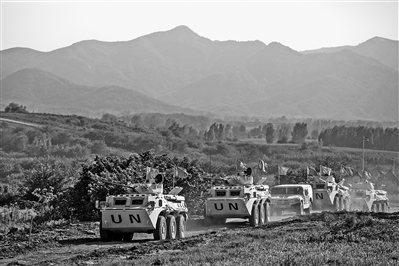 面對記者的采訪,第82集團軍某合成旅營長何永學拍了拍手中的藍盔。標有白色“UN”字樣的藍盔,既是保護自身安全的裝備,也是聯合國維和軍人的象征。
