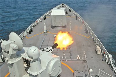 “上級命我艦立即對‘敵’灘頭陣地實施火力打擊!” 艦艇編隊剛抵達訓練海域,某艦就接到任務,官兵立即進入戰斗狀態!爸髋陂_始射擊!币宦暳钕,主炮迅速鎖定目標并實施打擊。此時,雷達戰位發現又有空中目標快速接近艦艇!案迸诮M織射擊!”指揮員研判戰場態勢后,果斷下達攻擊命令。隆隆炮聲中,來襲目標被擊中,空中威脅解除。