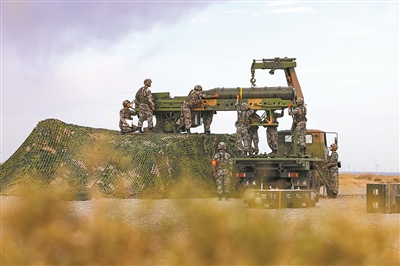 隨后,“敵”機編隊越過山頭,向陣地俯沖而來。嚴陣以待的導彈分隊官兵,迅速進入戰斗狀態。點火,發射!導彈呼嘯出膛,織就一張嚴密的火力打擊網。