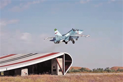 一架蘇-25UTG教練機從“尼特卡”系統平臺起飛