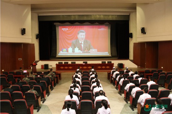 火箭軍某部醫院組織全院官兵、文職、聘用人員集體觀看十九屆六中全會現場直播。李黎攝