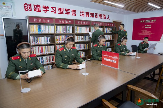武警浙江總隊杭州支隊官兵通過廣播收聽會議精神要點。周祥攝