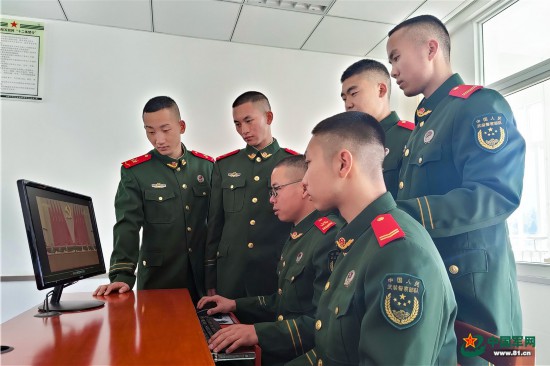 武警重慶總隊執勤第三支隊官兵利用強軍網查看全會相關新聞報道。彭勇攝