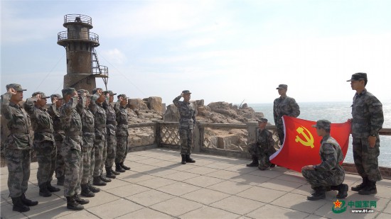 東部戰區海防某旅官兵深入學習貫徹十九屆六中全會精神重溫入黨誓詞。齊永輝攝