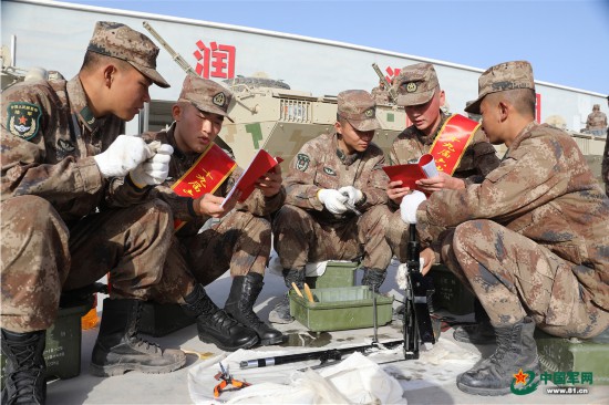 新疆軍區某團理論宣講隊在官兵休息間隙為他們講解全會精神。趙玄攝