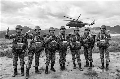 第一個跳出艙門的是西藏軍區某旅特戰女兵分隊排長翟慶茹。