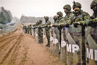 西方借難民危機向俄白兩國發難,圖為部署至白波邊境附近的波蘭士兵