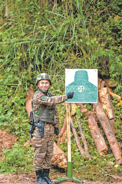 在武警重慶總隊執勤第二支隊訓練場上,特戰隊員莫圳鑫打出了50環的好成績(圖③)。去年,在總隊組織的比武中,他將個人全能第二名收入囊中。雖然留有遺憾,但訓練熱情依舊,他希望自己在新的一年固強補弱,向冠軍發起沖擊。