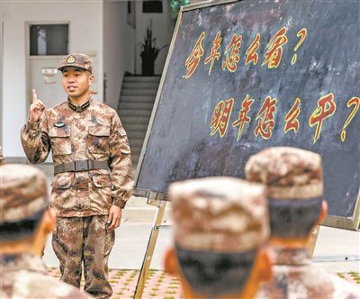 在第73集團軍某旅防化連樓前,指導員王路加正帶領官兵總結去年得失、暢想新年打算(圖①)。去年,該連多次圓滿完成重大演訓任務,在上級比武考核中拔得頭籌,遺憾的是沒被評上“四鐵”先進連隊。新的一年,王路加給連隊定下目標:各項工作勇爭第一,把“四鐵”先進連隊的牌子扛回來。