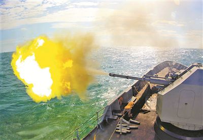 “‘敵’岸上火炮陣地對我構成威脅,命你艦實施炮火攻擊!”某參訓艦艇剛抵達訓練海域,便接到戰斗指令。官兵迅速進入戰位,做好戰斗準備!皟山M兩發!放!”指揮員一聲令下,烈焰噴涌,“敵”岸上火力點被成功摧毀。