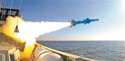 “5、4、3、2、1,發射!”一聲令下,導彈拖著尾焰呼嘯而出,直撲“敵”艦……