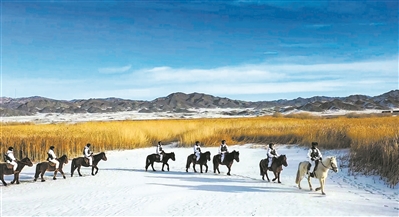 穿雪原、跨冰河,隊伍一路向前?諘绲难┮爸,除了馬蹄踏在積雪上發出的咯吱聲,就只剩寒風呼嘯。