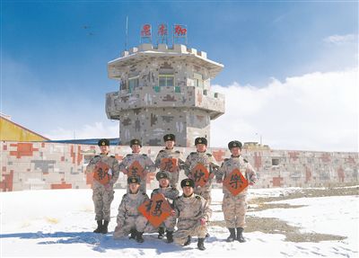 圖①:日土機務站官兵在海拔5000多米高原向全國人民拜年。