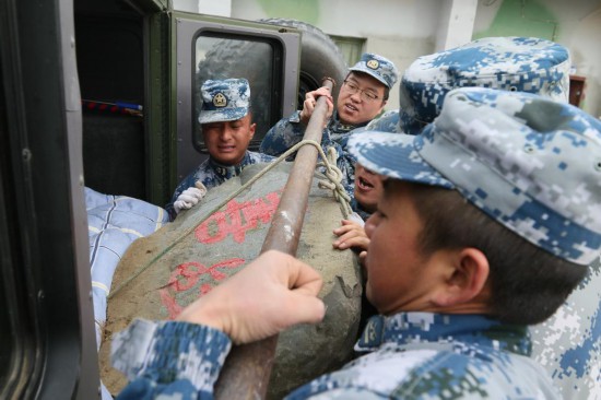 官兵去老營區搬運“家園石”