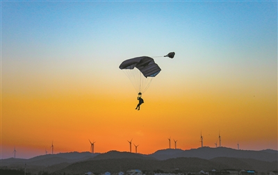女子特戰小隊隊員進行翼傘滑翔。顧熙熙攝