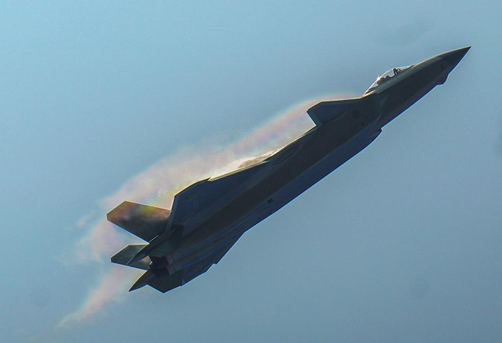 2021年9月28日,第十三屆中國國際航空航天博覽會在廣東珠海開幕,這是中國空軍殲-20戰機在開幕式上進行飛行表演。新華社記者 劉大偉 攝