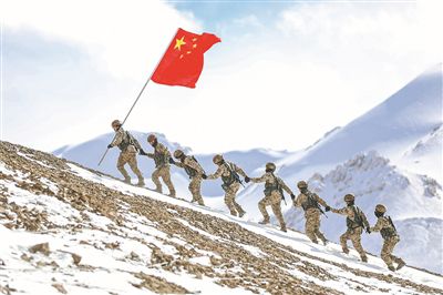 新疆軍區某邊防團官兵不畏嚴寒巡邏守邊。 黃飛皓攝