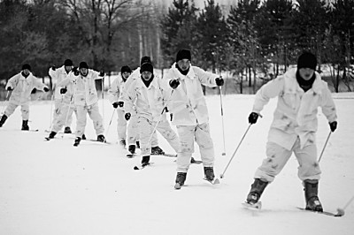 現代戰爭中也有很多借助冰雪運動克敵制勝的例子。第一次世界大戰期間,法國、德國、奧地利都成立了高山滑雪部隊。冰雪運動在特種作戰中更大有可為。我們在諜戰劇里常?吹,身懷絕技的特工憑借高超的滑雪或滑冰技術,深入敵后執行任務,F實中,確有一批平凡而偉大的英雄舍生忘死勇闖龍潭虎穴,替全人類擋住黑暗。1940年,納粹德國吞并挪威,占領了維莫克化工廠,這是當時世界上唯一的重水生產中心,重水是制造原子彈的重要材料;S隱蔽在崇山峻嶺間,防護嚴密,堅固異常,無法用飛機轟炸摧毀,英國只好派特戰隊員滲透破襲。經過3年多的努力,前后犧牲了83人,特戰隊員利用滑雪板和雪橇在工廠周邊偵察準備,最后穿過積雪覆蓋的森林,滑過驚險的雪地,摸過橫在冰塊翻滾急流之上的“冰橋”,攀上300米高的冰封峭壁,終于炸毀工廠破壞了全部重水,創造了英國乃至世界特種作戰史上空前輝煌的戰果。
