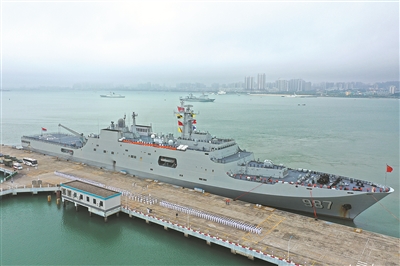 上圖:五指山艦靠泊湛江某軍港碼頭。殷征攝