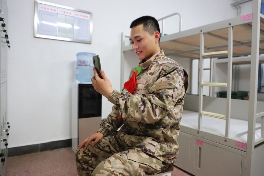 兒行千里母擔憂、千里親情一線牽。剛到班里,班長就讓新戰友們和父母報平安:“請爸媽放心,一切安好,我已經安全到達軍營,骨干和戰友們待我們如手足一般,我會好好努力,踏上人生新的征程,早日完成向合格軍人的轉變!”