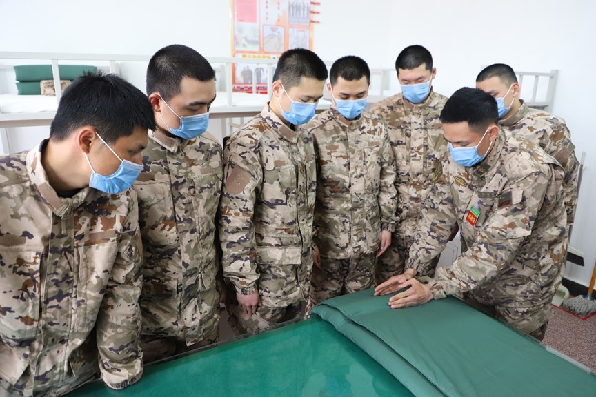 入營的新戰友們即將擁有自己的專屬“豆腐塊”,他們認真觀摩學習班長演示內務標準,立志向標準看齊!