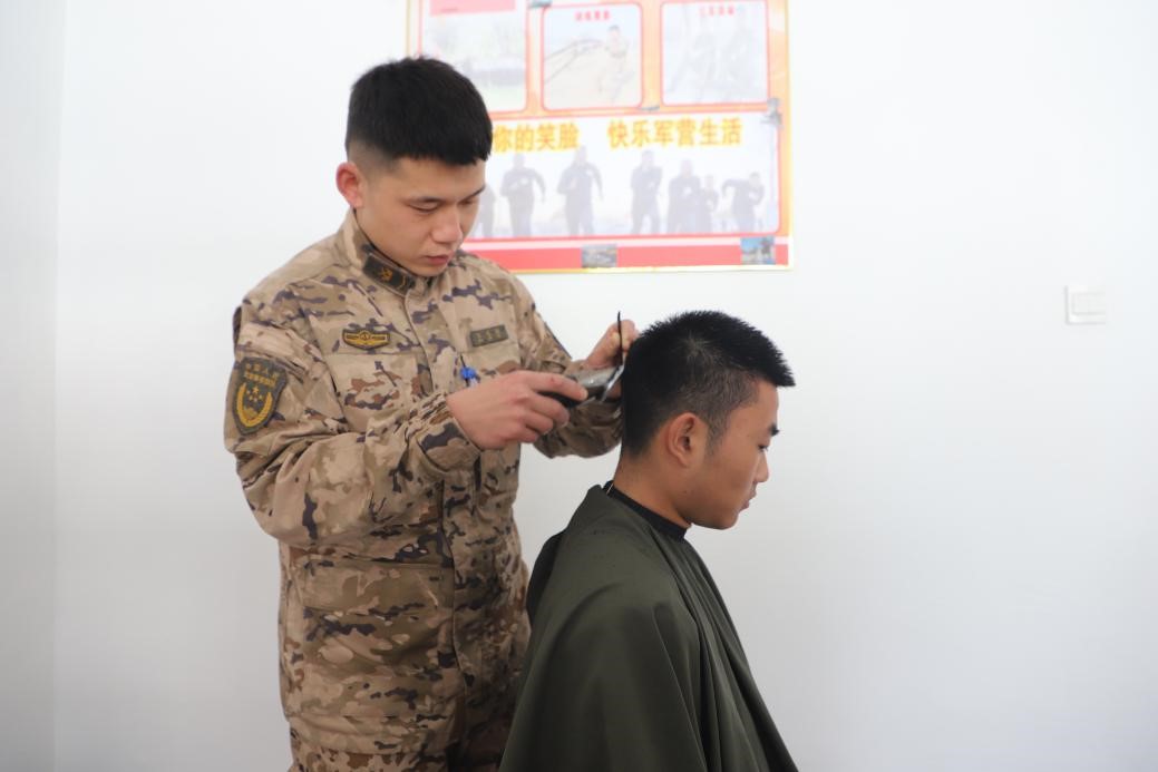 組織新戰友理發,樹立起整齊劃一的新風范。陽剛帥氣的板寸,干凈利落的軍裝,這就是軍人的模樣!