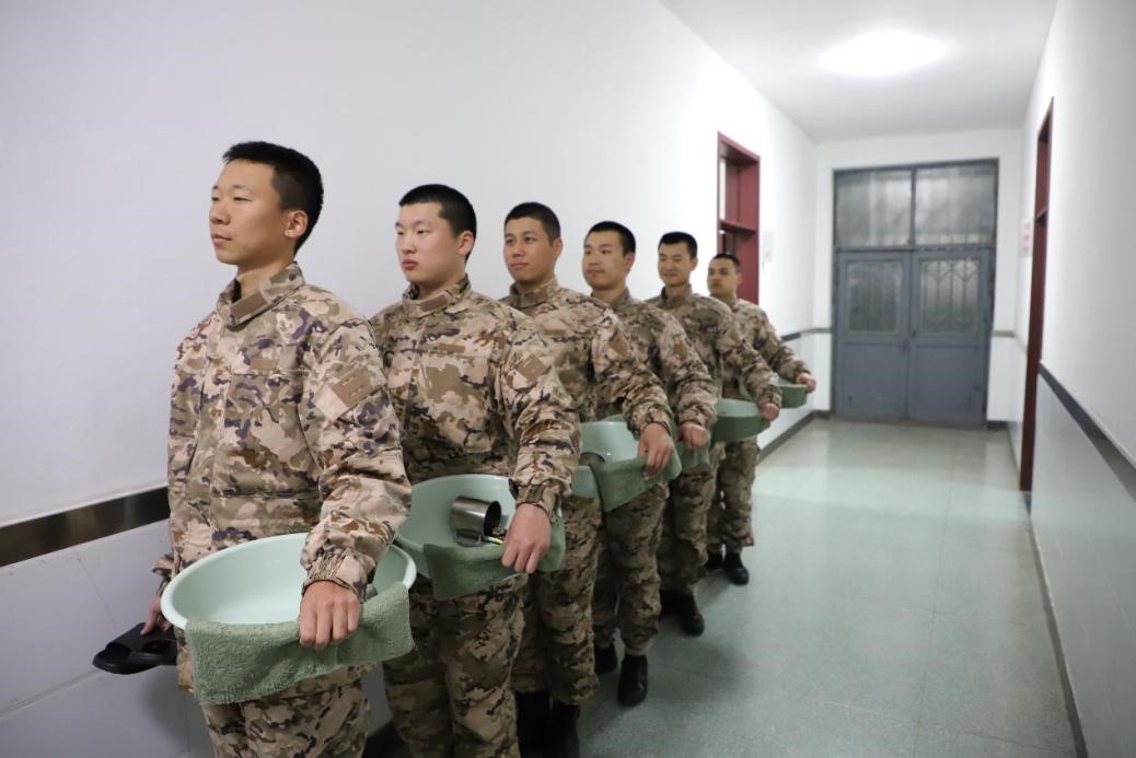 經歷了長途跋涉,已是風塵仆仆。來到班里放下行李,班長早早就擺好臉盆、倒滿熱水,讓新戰友們洗去臉上的風塵與疲倦,感受到家的溫暖。