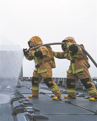 “發現空中來襲目標!”突然,戰斗警報聲響徹?。官兵聞令而動,奔赴戰位。編隊立即組成防御隊形,連續發射多枚干擾彈,在艦艇周圍形成“電磁迷霧”。與此同時,各艦副炮同時開火,在空中織就一張火力網,成功抗擊“敵”來襲目標。