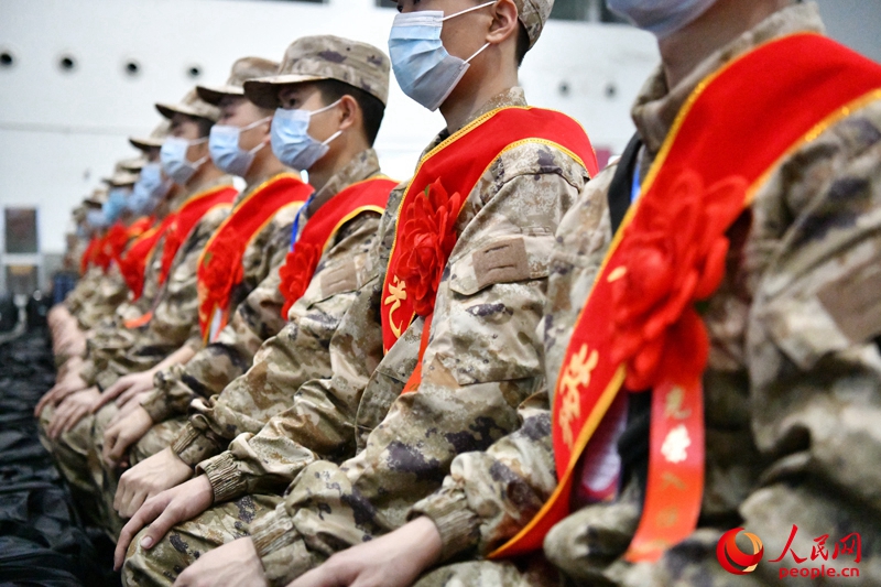 在安徽省六安市,700余名預定新兵胸前的紅花映著青春剛毅的臉龐。他們胸懷滿腔熱血,分31個批次陸續奔赴祖國大江南北。