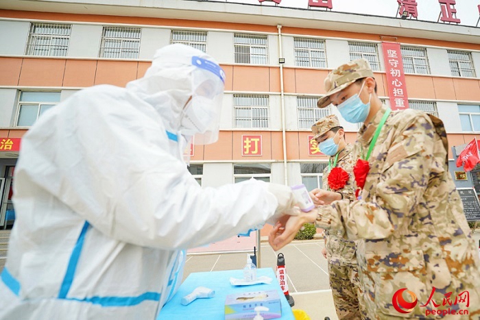 在武警天津市總隊某新兵營區內,干部骨干早早開始入營準備工作,清掃營房、消殺通風……待新兵到站后,醫務人員便及時對所有新兵攜行的物品進行消毒,逐人測量體溫并檢查健康碼,及時建立隔離區,多措并舉做好入營后疫情防控工作,為新戰友的健康保駕護航。