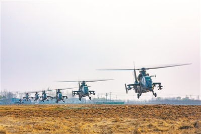 3月23日,第80集團軍某旅組織直升機編隊飛行訓練。