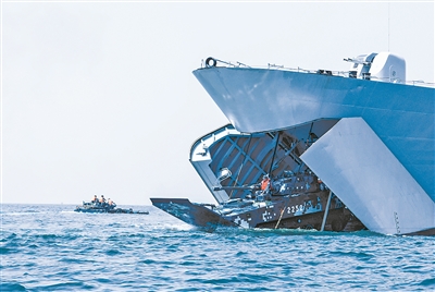 隨著指揮員一聲令下,該旅兩棲裝甲分隊多型兩棲裝甲車相繼入水,向預定海域機動,與某登陸艦一同進行海上浮渡裝卸載課目訓練。由于海況復雜,車輛操控受到干擾。在隨艦引導員指揮下,戰車克服涌浪影響,順利登艦。隨后,車組成員快速完成車輛捆綁加固,模擬進行航渡。