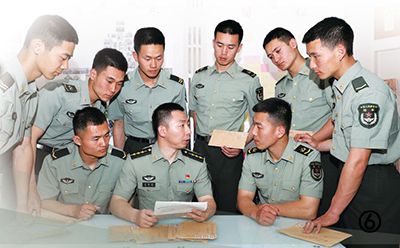 圖⑥:連隊官兵在學習室學習劉海峰來信的場景。楊五陽攝